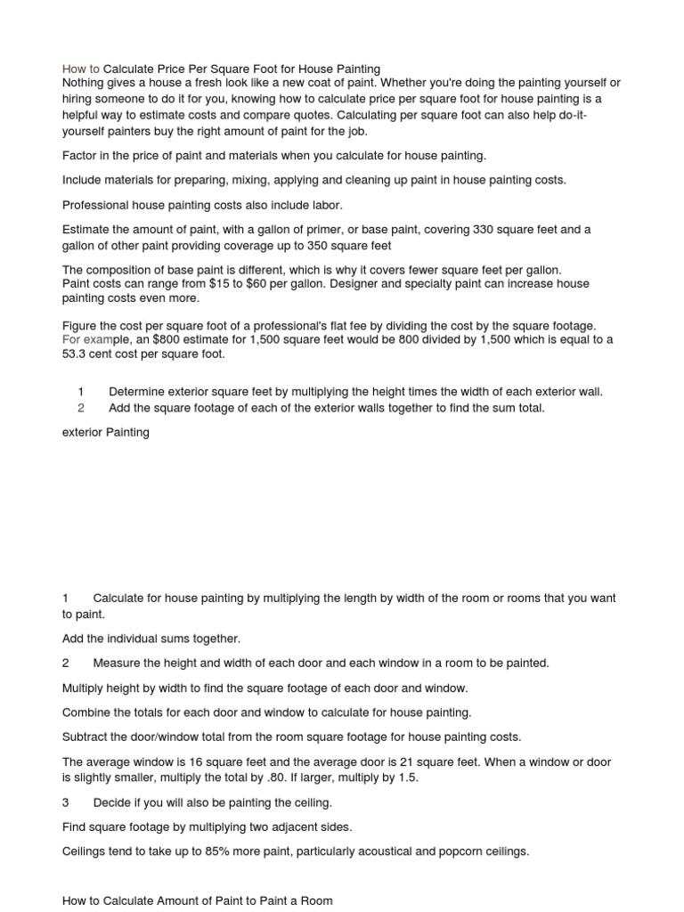 - How To Calculate Price Per Square Foot For House Painting , Square Footage Does Not Account For Height.